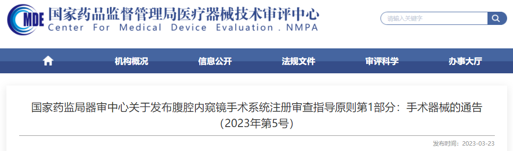 為進一步規(guī)范腹腔內窺鏡手術系統(tǒng)的管理,國家藥監(jiān)局器審中心組織制定了《腹腔內窺鏡手術系統(tǒng)注冊審查指導原則 第1部分:手術器械》,現(xiàn)予發(fā)布。