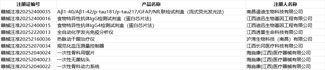 根據(jù)江西省藥品監(jiān)督管理局2025年1-3月發(fā)布的醫(yī)療器械注冊數(shù)據(jù),共新增9 個第二類醫(yī)療器械注冊證,涉及6家注冊人企業(yè)。
