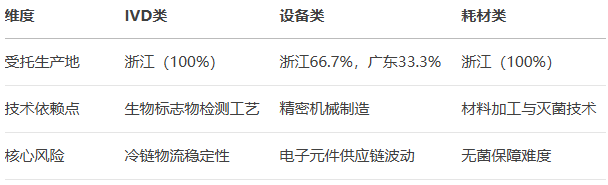 核心發(fā)現(xiàn):100%產(chǎn)品委托外省生產(chǎn),長三角(浙江)占比77.8%,珠三角(廣東)占11.1%,凸顯沿海地區(qū)高端制造優(yōu)勢。