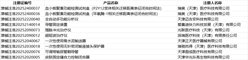 根據(jù)天津藥品監(jiān)督管理局2025年1-3月發(fā)布的醫(yī)療器械注冊(cè)數(shù)據(jù),共新增10個(gè)第二類(lèi)醫(yī)療器械注冊(cè)證,涉及9家注冊(cè)人企業(yè)。