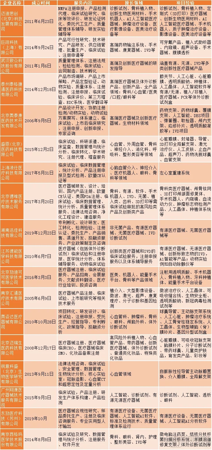 表1醫(yī)療器械研發(fā)外包服務(wù)企業(yè)基本情況;