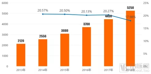 圖4 2013-2018年中國醫(yī)療器械市場規(guī)模(億元);