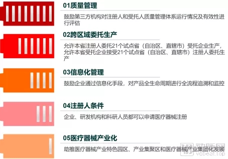 通過對21個(gè)省份醫(yī)療器械注冊人制度試點(diǎn)政策的梳理,對醫(yī)療器械研發(fā)外包服務(wù)行業(yè)影響較大的有質(zhì)量管理、跨區(qū)域委托生產(chǎn)、信息化管理、注冊人條件和醫(yī)療器械產(chǎn)業(yè)化5個(gè)方面的內(nèi)容。
