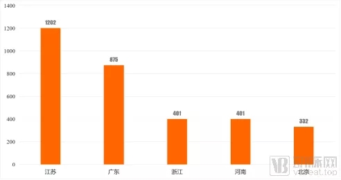 圖8 2019年國內(nèi)三類醫(yī)療器械首次注冊數(shù)量TOP5地區(qū);