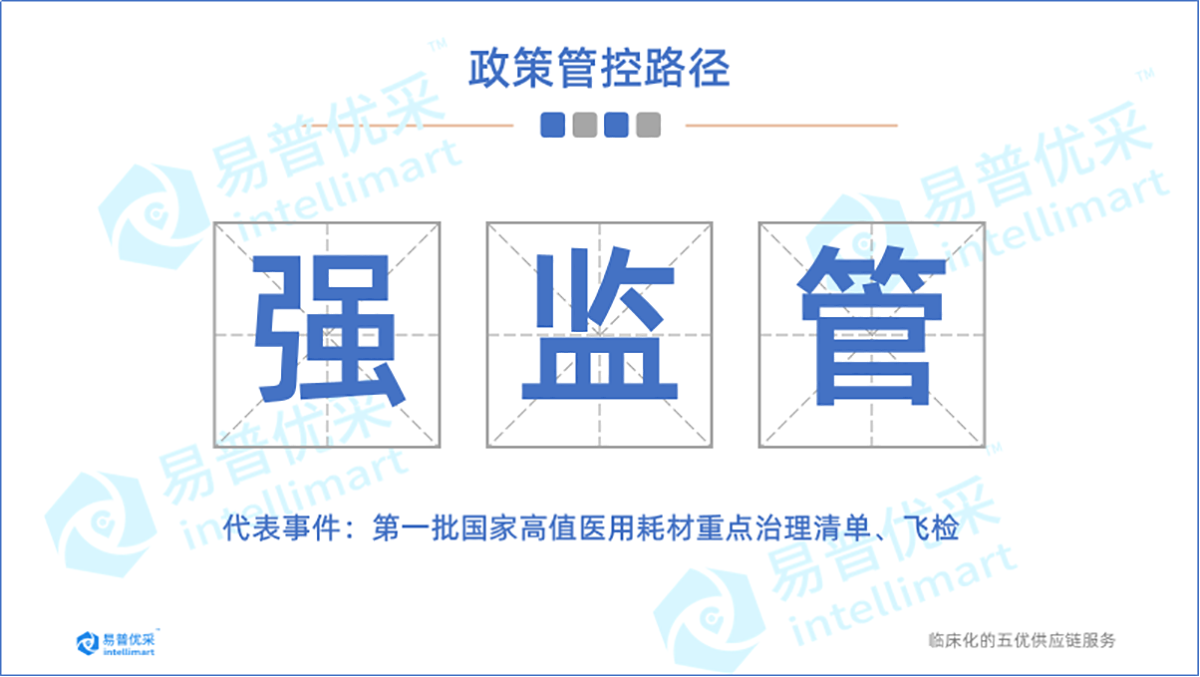 第三條是加強(qiáng)監(jiān)管,比如年初衛(wèi)健委即下發(fā)了第一批國(guó)家高值醫(yī)用耗材重點(diǎn)治理清單,以及醫(yī)保局日趨嚴(yán)苛、密集的飛行檢查,均在借助行政手段的力量逐步規(guī)范耗材采購(gòu)及用耗行為。我們逐一來看。
